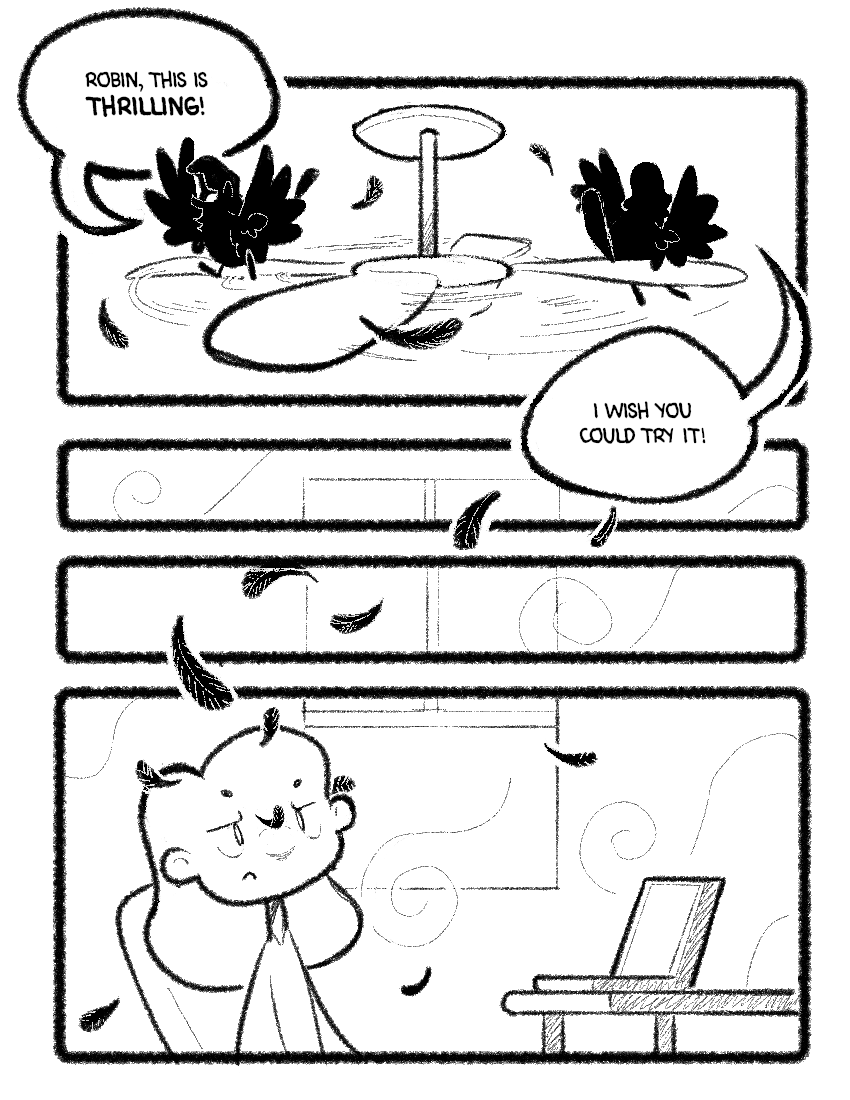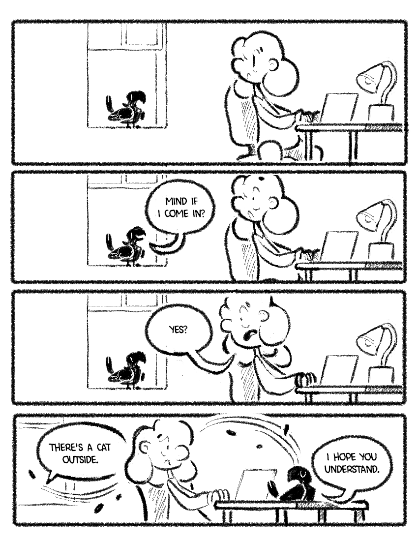 Shiny Things is a 60-page webcomic about a crow, a human, and occasional existential crises. If you want to read it for free, use the next and previous buttons to peruse the first half above.
